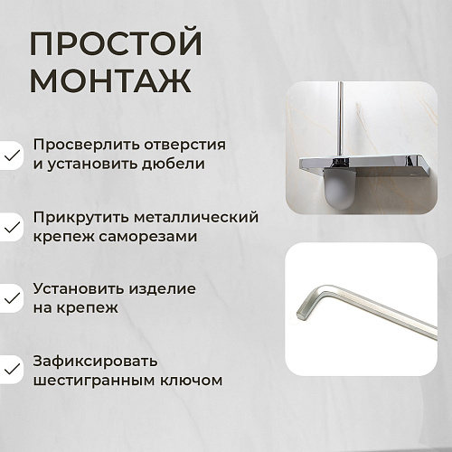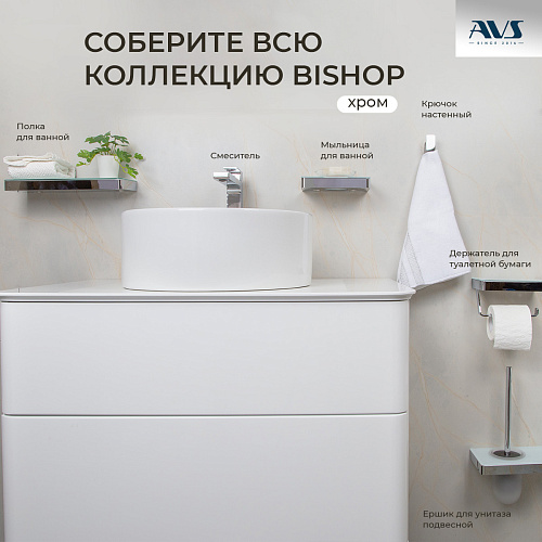 Ершик подвесной AVS Bishop, хром/белый, с полочкой