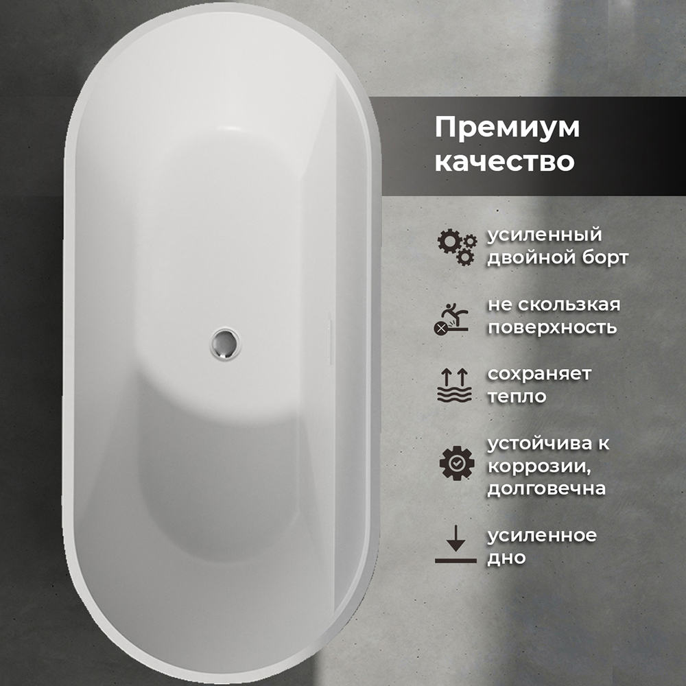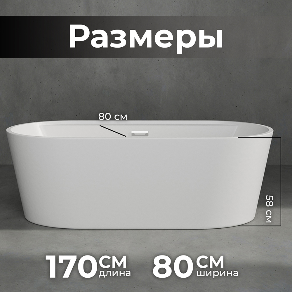 Акриловая ванна AVS Оливия 170x80 белая, с донным клапаном